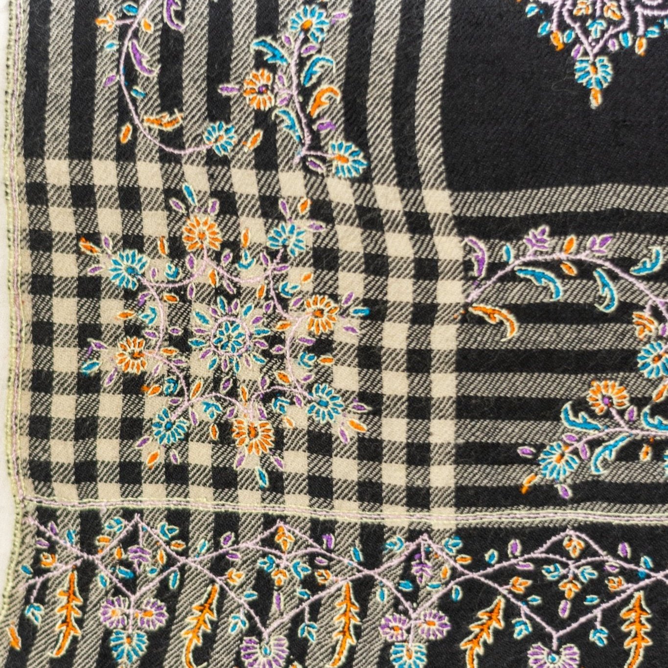 Woven by hand in Srinagar, Kashmir, and embroidered with delicate Sozni needlework in green and black tones, this luxury wrap takes 6–8 months to complete. Every stitch reflects generations of Kashmiri artistry.